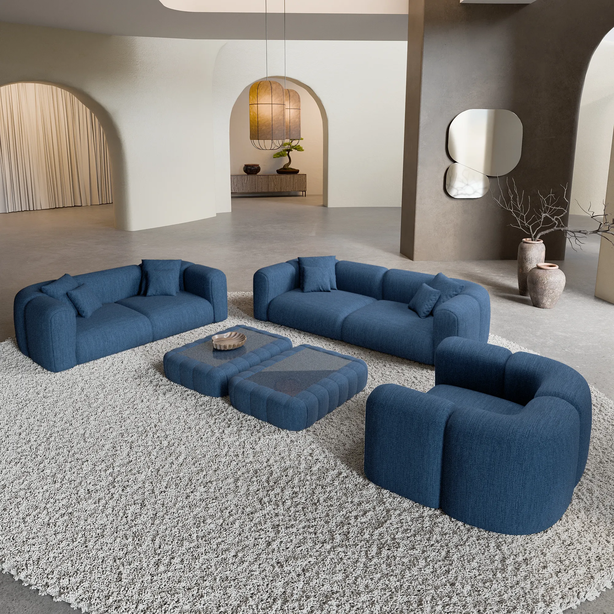 Strukturstoff 3-2-1-Sitzer Sofa Set Belio