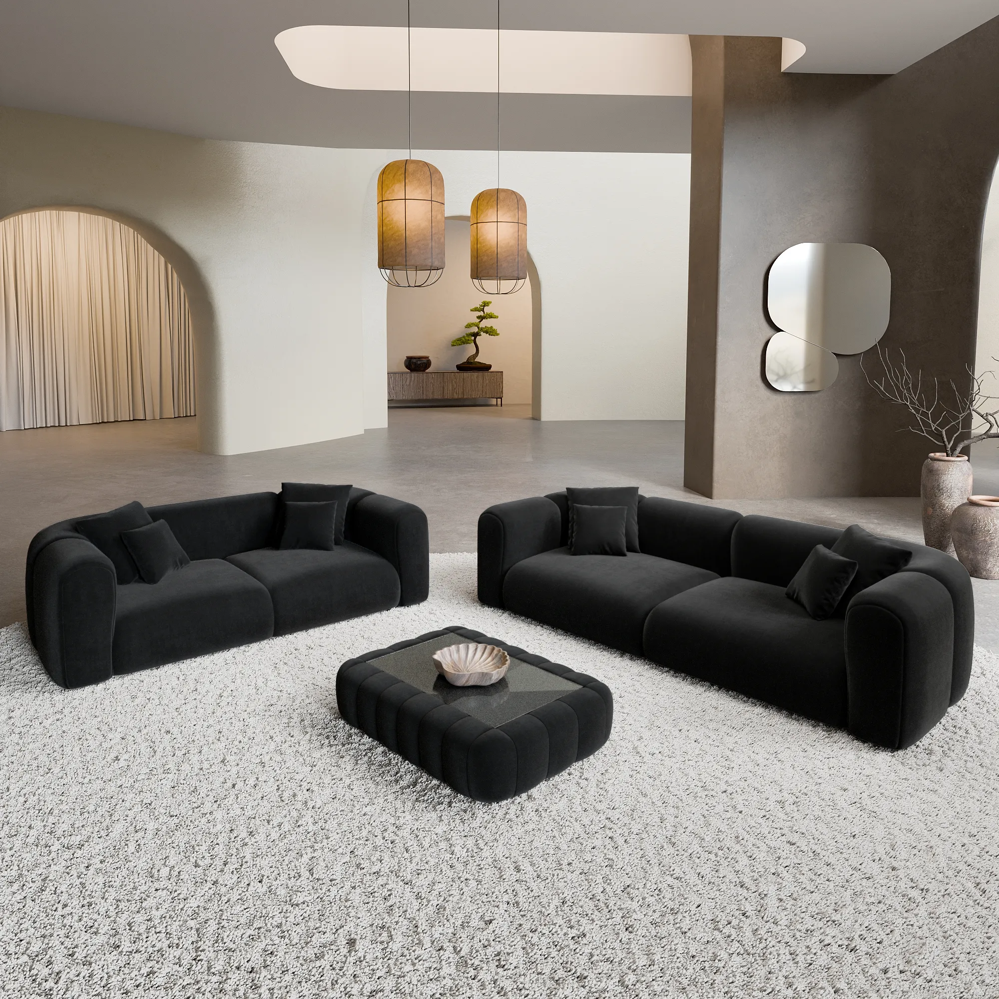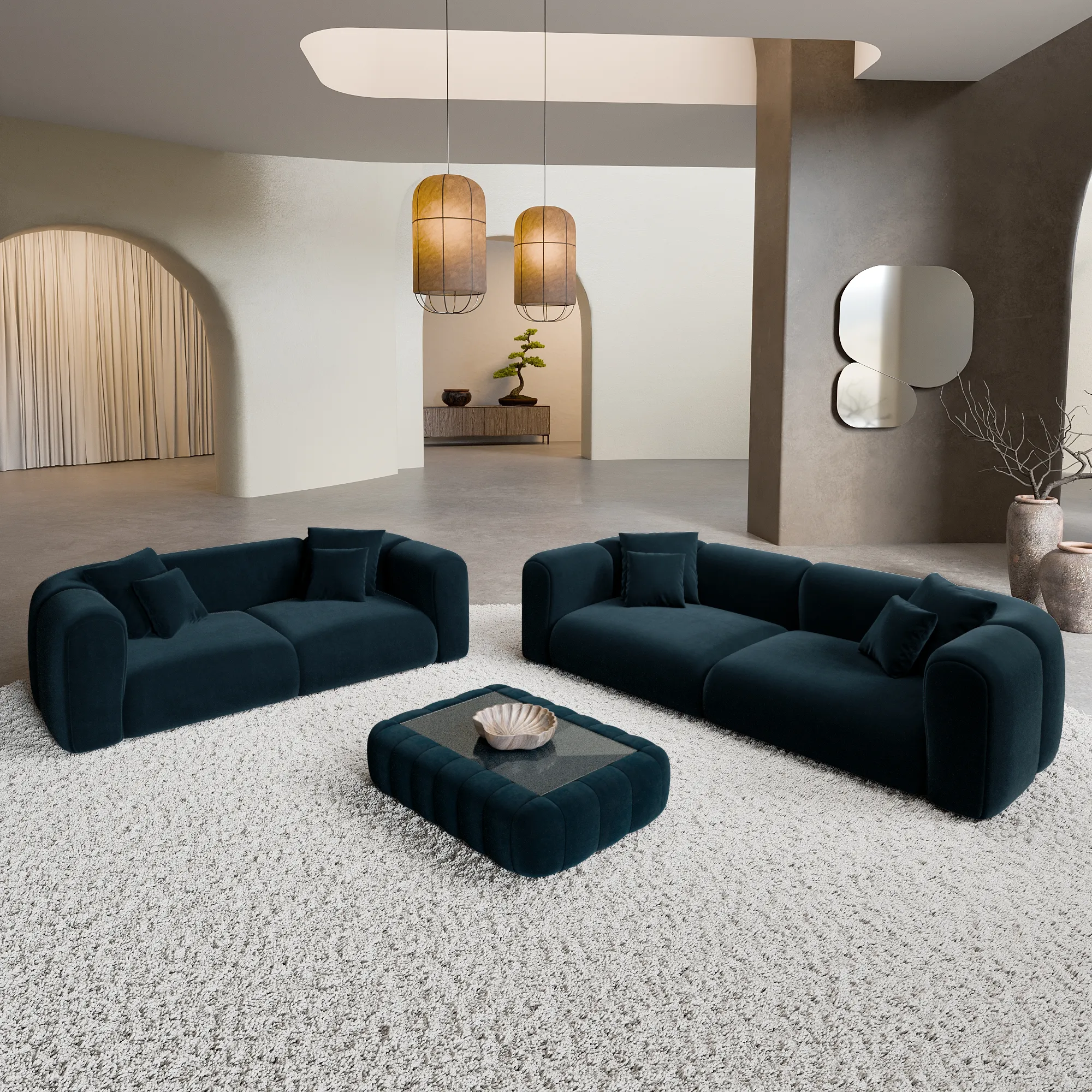 Samtstoff 3-2-Sitzer Sofa Set Belio