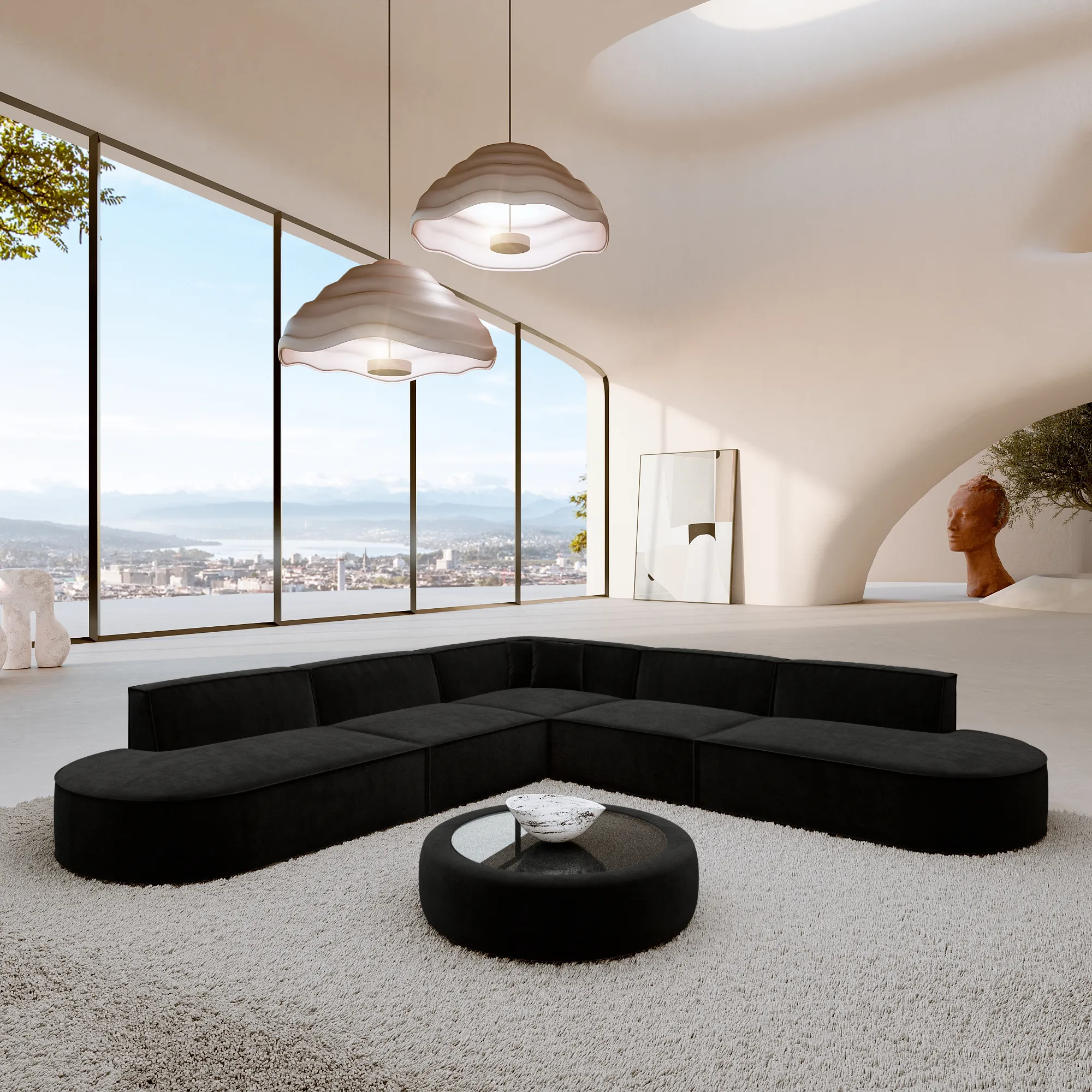 Bouclé L-Form Lounge Studio Sofa Brevia