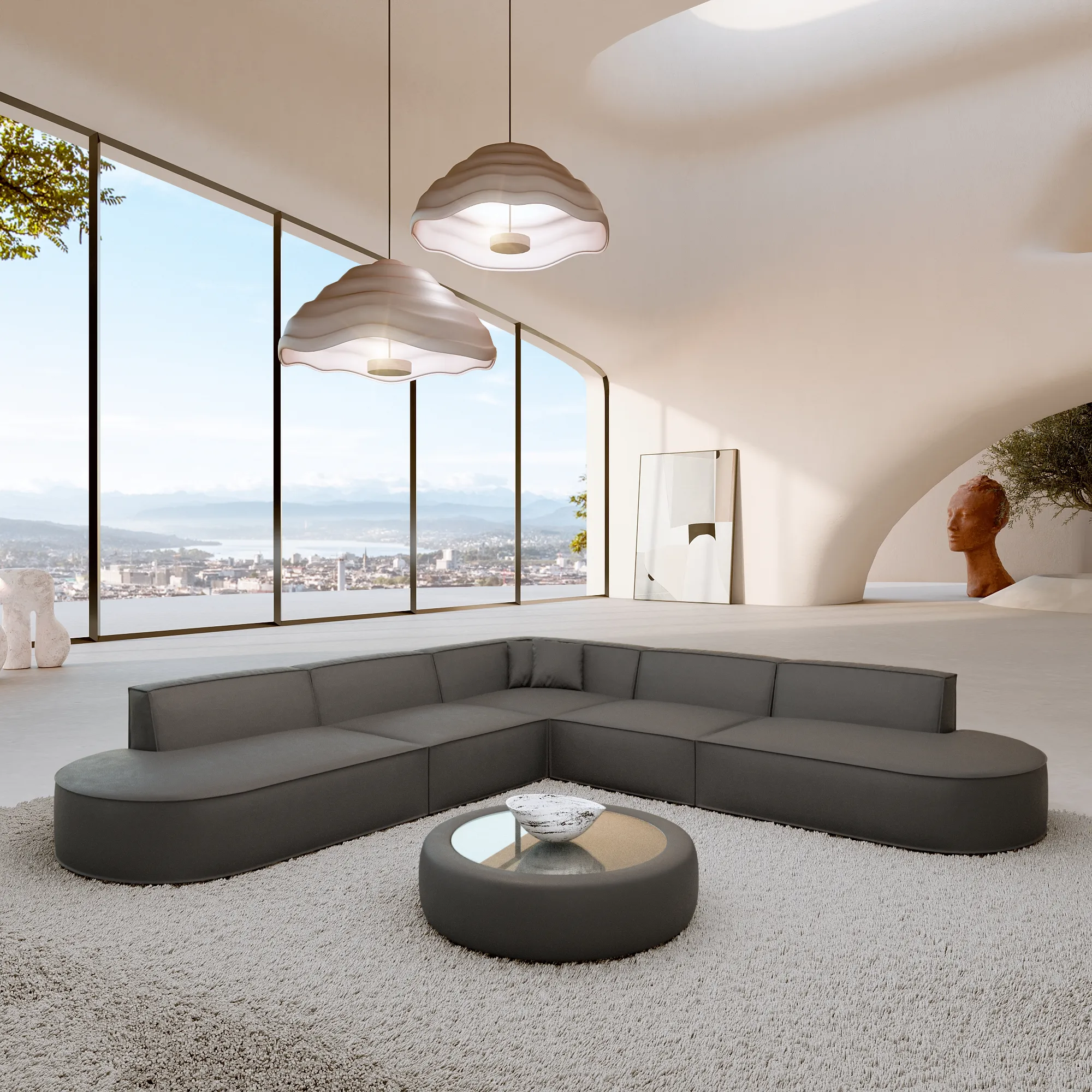 Bouclé L-Form Lounge Studio Sofa Brevia