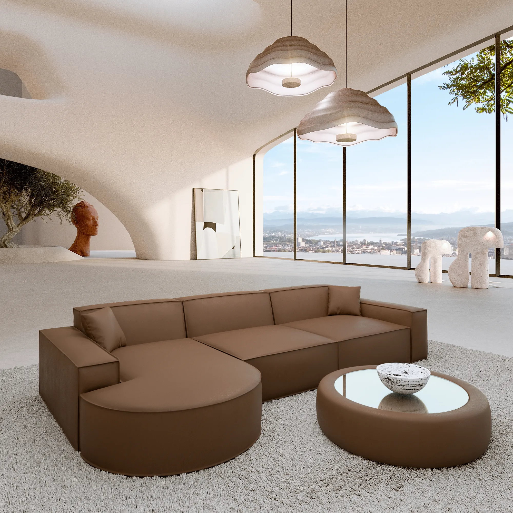 Bouclé L-Form Lounge Studio Sofa Brevia