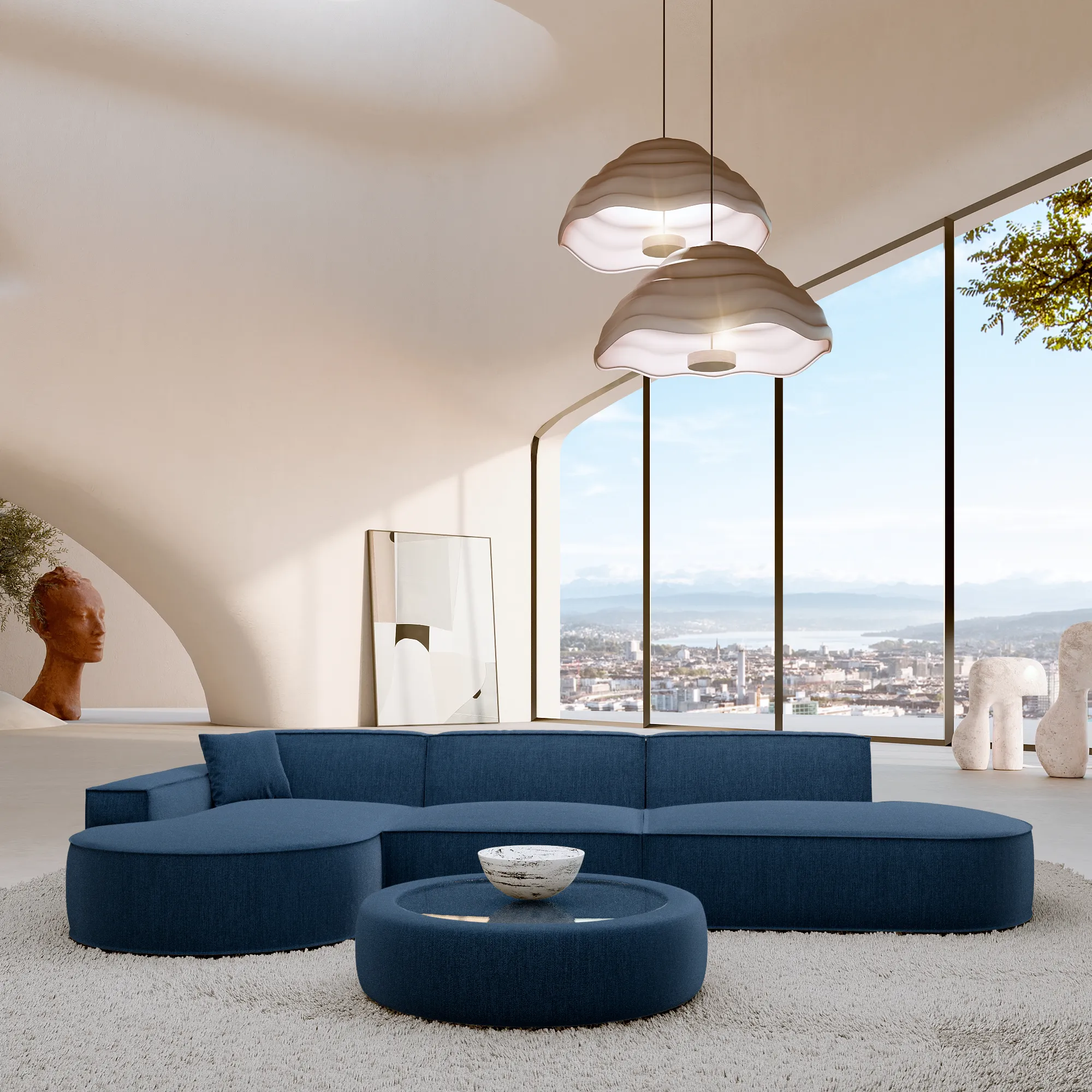 Bouclé L-Form Lounge Studio Sofa Brevia