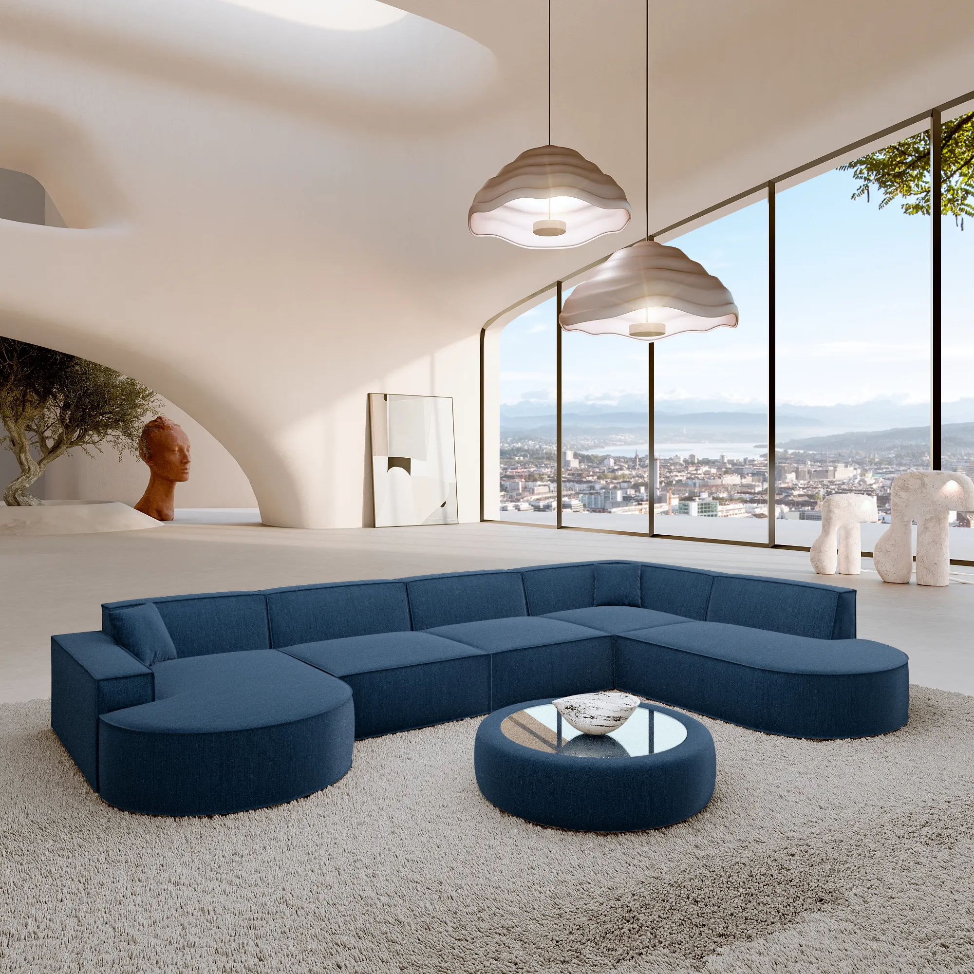 Bouclé L-Form Lounge Studio Sofa Brevia