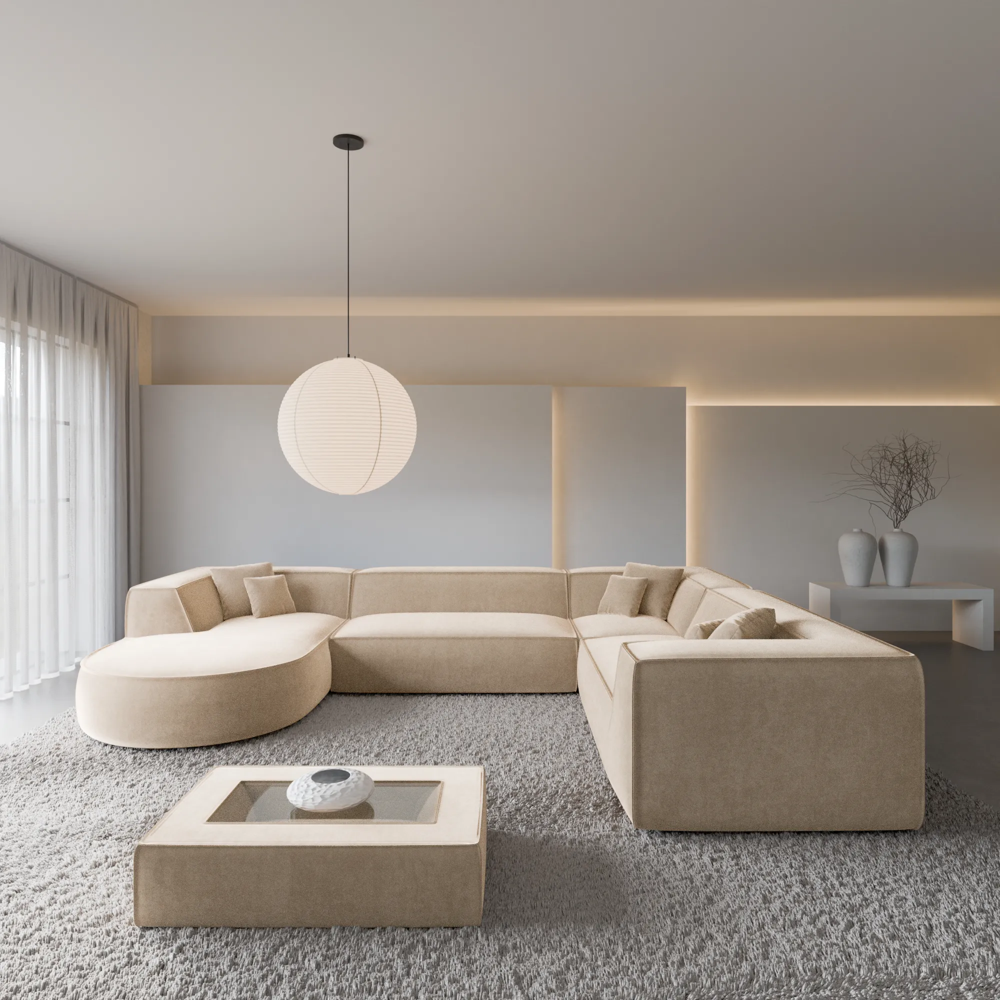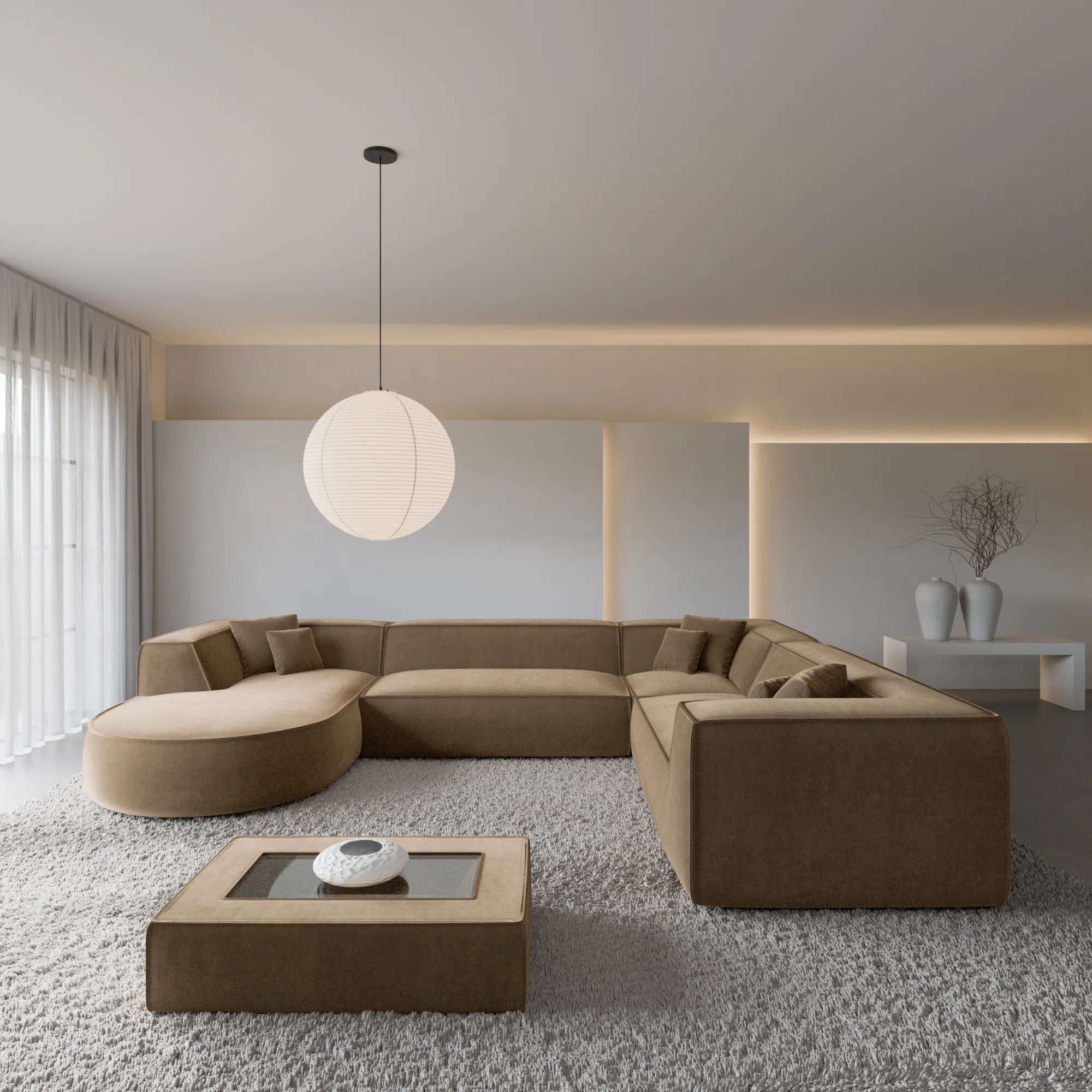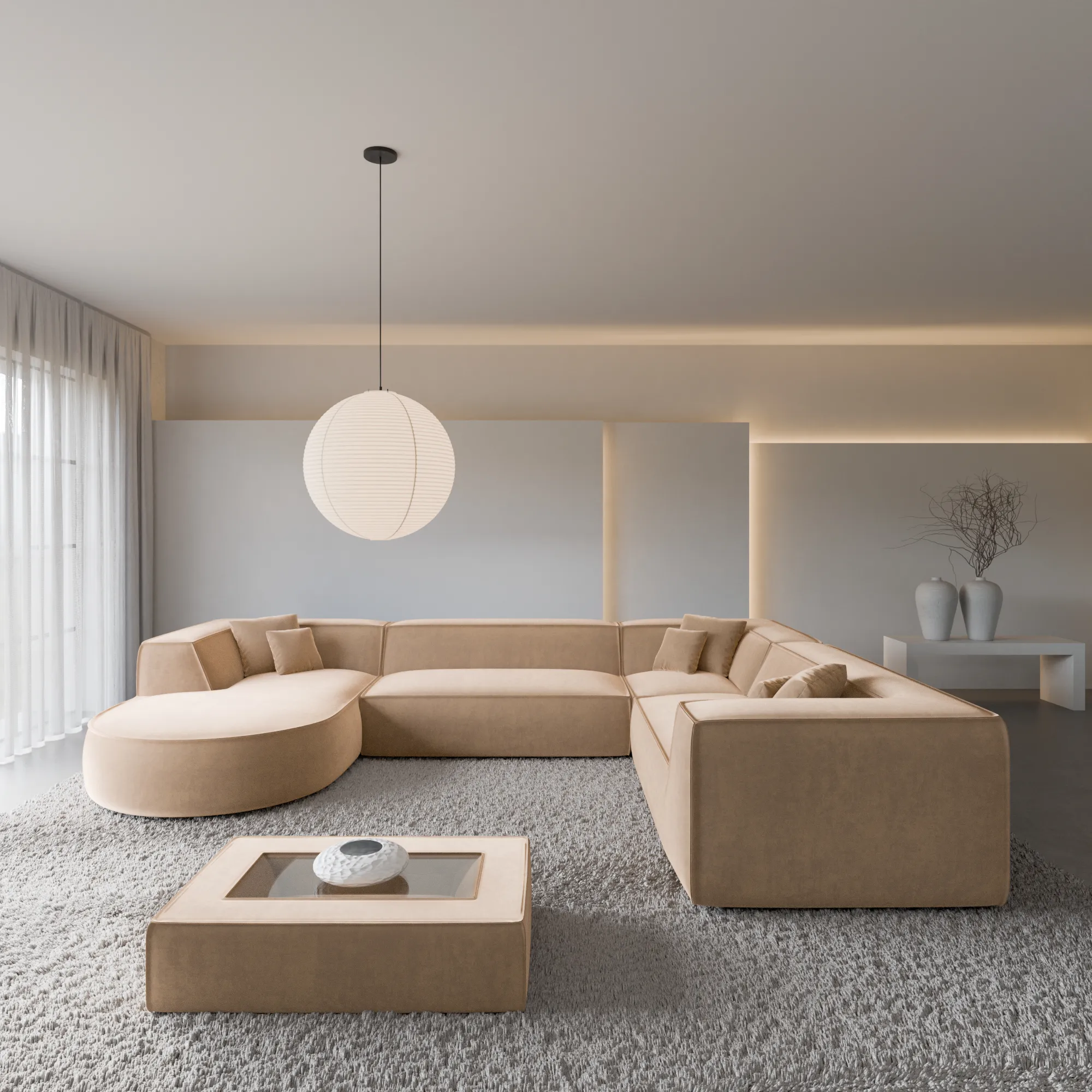 Samtstoff U-Form XXL Wohnlandschaft Liberia
