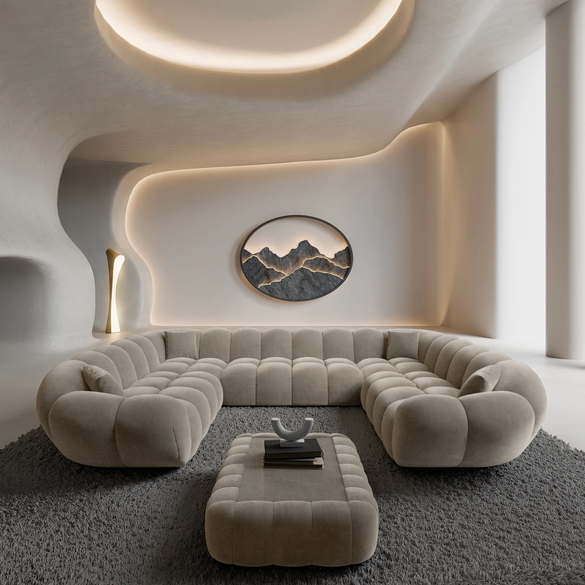 Samtstoff U-Form XXL Panorama Sofa Liva
