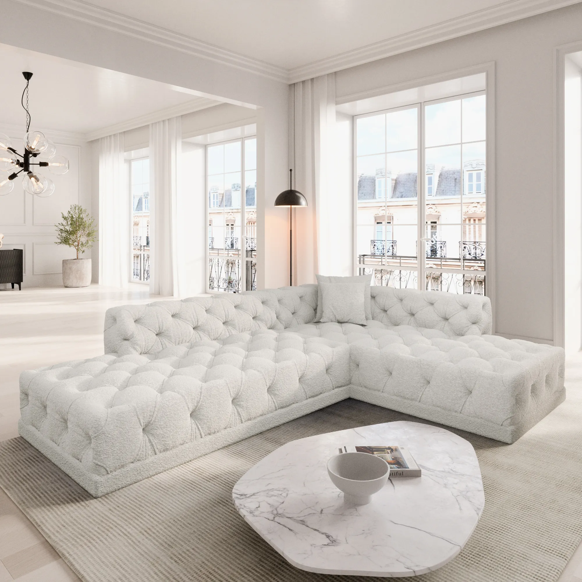 Bouclé L-Form Lounge Sofa Meliva