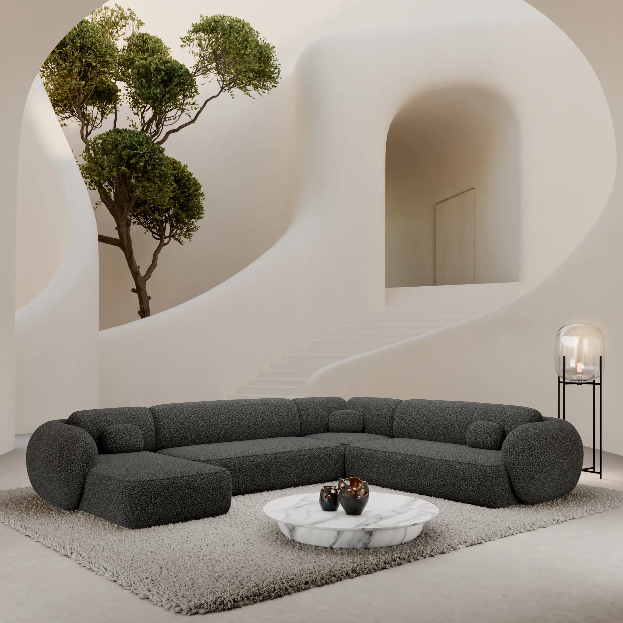 Bouclé U-Form XXL Wohnlandschaft Mira